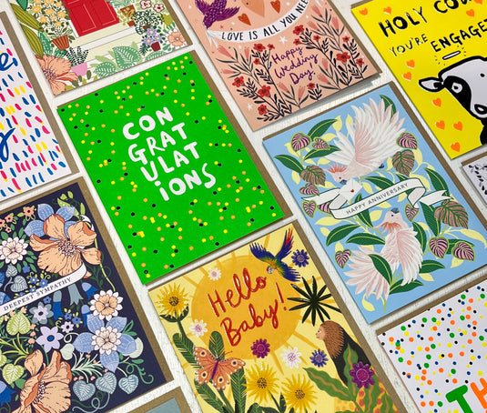 Send a card, deliver a smile is our industry's mantra and really that's what we're all about - sending a little note of happiness. Founded by Dom Early and co-owned with wife Heidi, we've been designing cards for over 20 years and love working with our small team and are lucky to have fantastic collaborations with other talented designers.